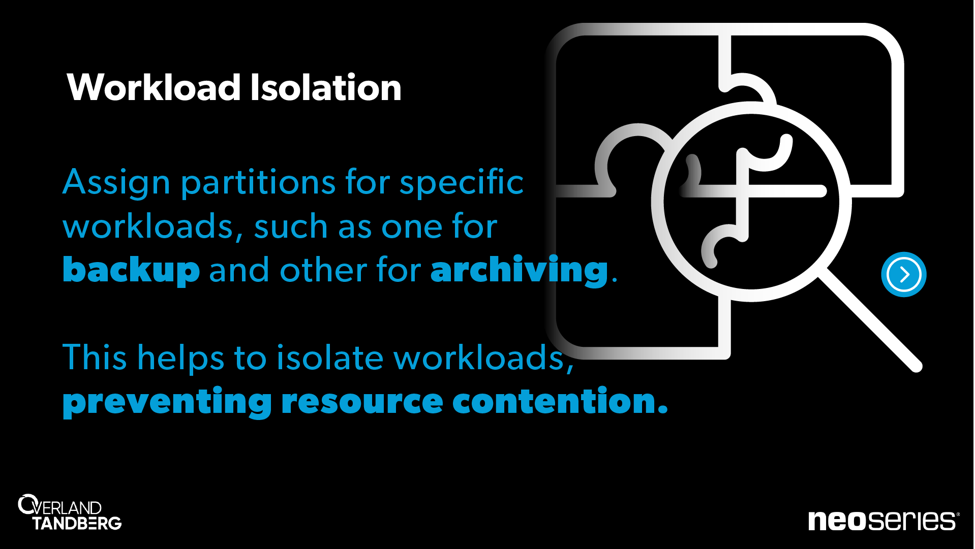 With NEOs tape libraries, scalability and adaptability are paramount, ensuring your storage infrastructure evolves alongside your business needs. Step up your data management efficiency with partitioning.